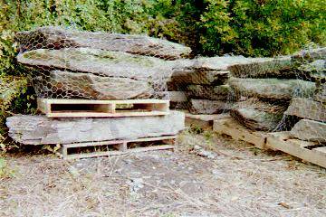 Shape ranges from flat to boulder with accent moss and fossil deposits. Size varies from two-man (100 lb.) to large landscape stones (3,000 lb.).